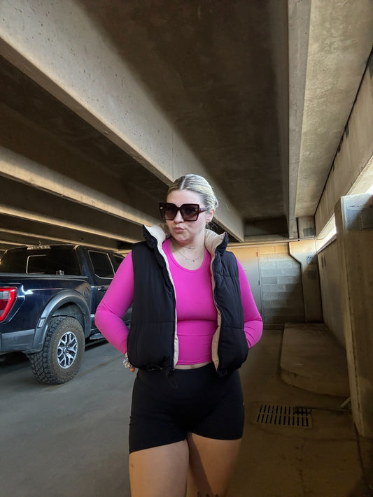 Fall Frenzies Puffer Vest - Reversible Black & Tan
